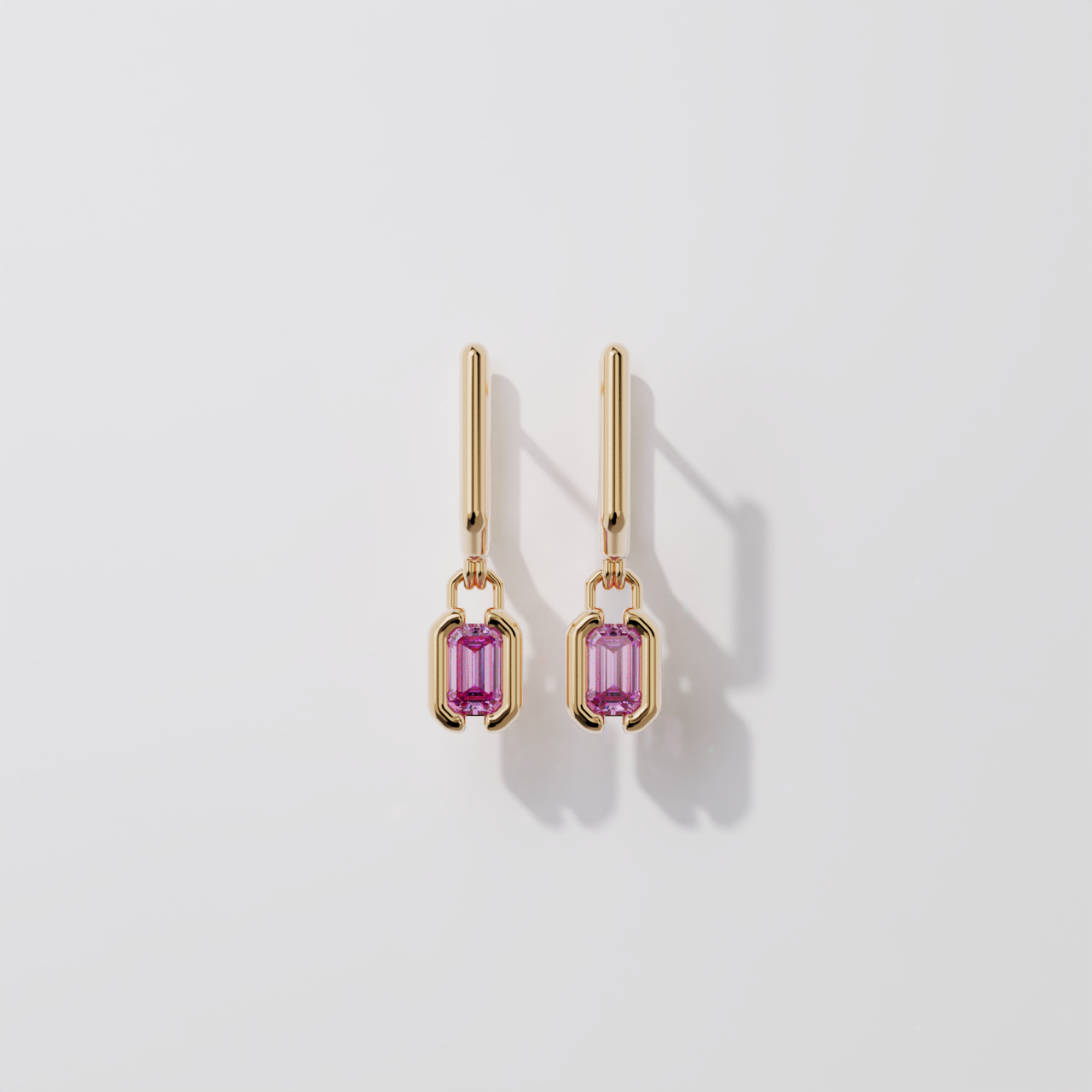 Boucles pendantes - Parenthèse saphir rose - Or jaune
