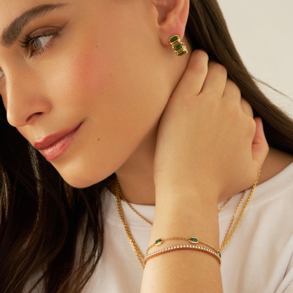Bracelet - Parenthèse saphirs verts - Or jaune