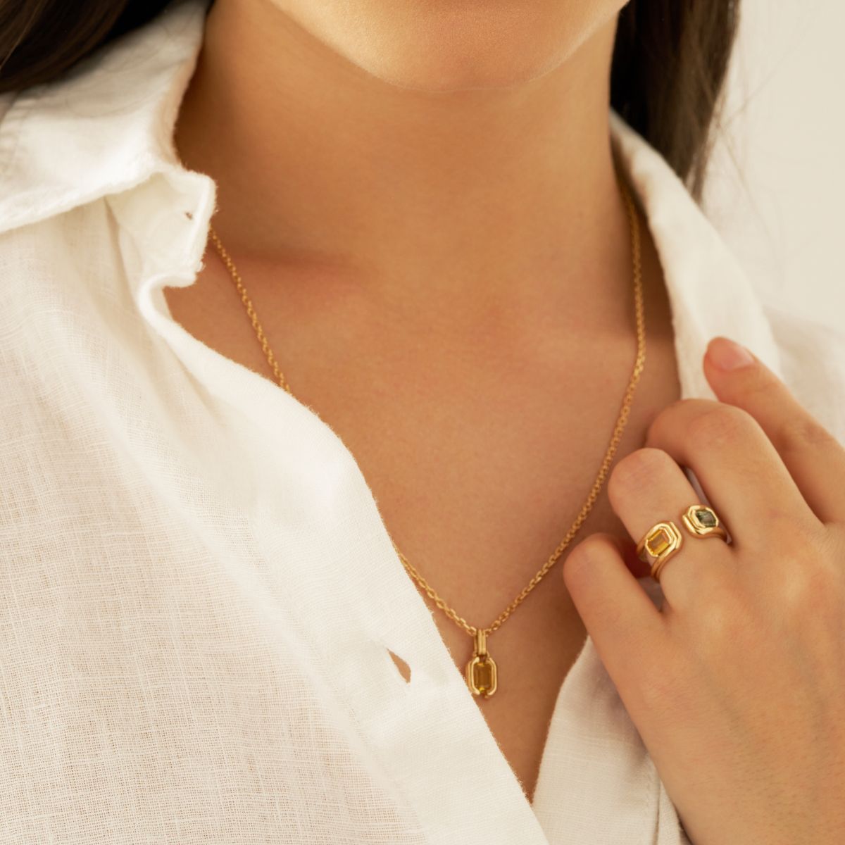 Toi & Moi - Parenthèse saphir vert & jaune - Or jaune
