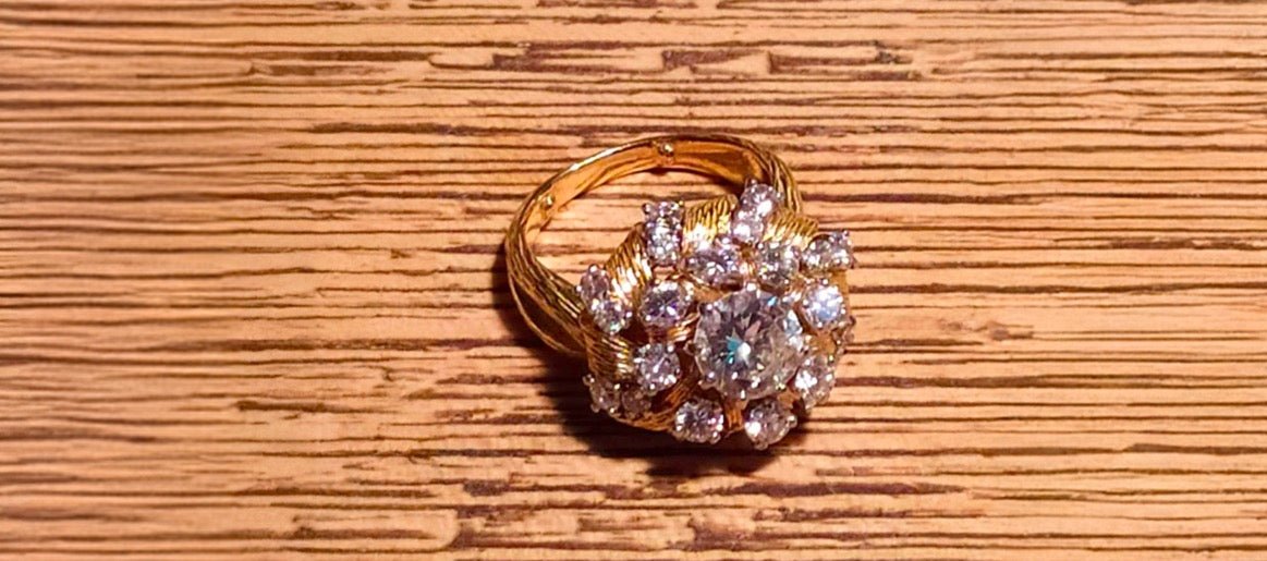 • Bague de fiançailles : Diamants du client - pavage de diamants ronds - monture en or Jaune 18k