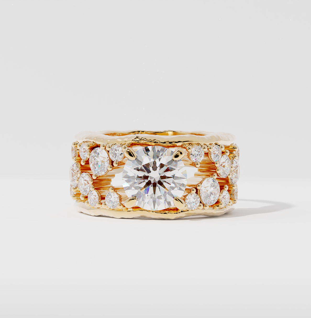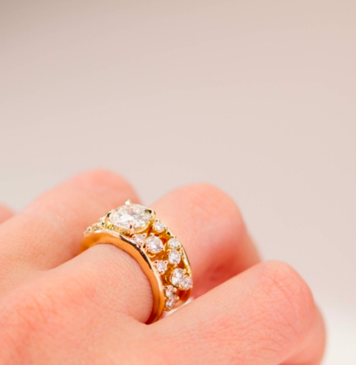 Mot de la cliente : "C’est une bague lumineuse, qui me ressemble et reflète parfaitement à notre histoire. J’ai adoré l’écoute et l’accompagnement durant cette expérience, Nicolas et toute l’équipe ont rendu cette expérience inoubliable. Ils ont su créer notre bague, et je l’adore !"