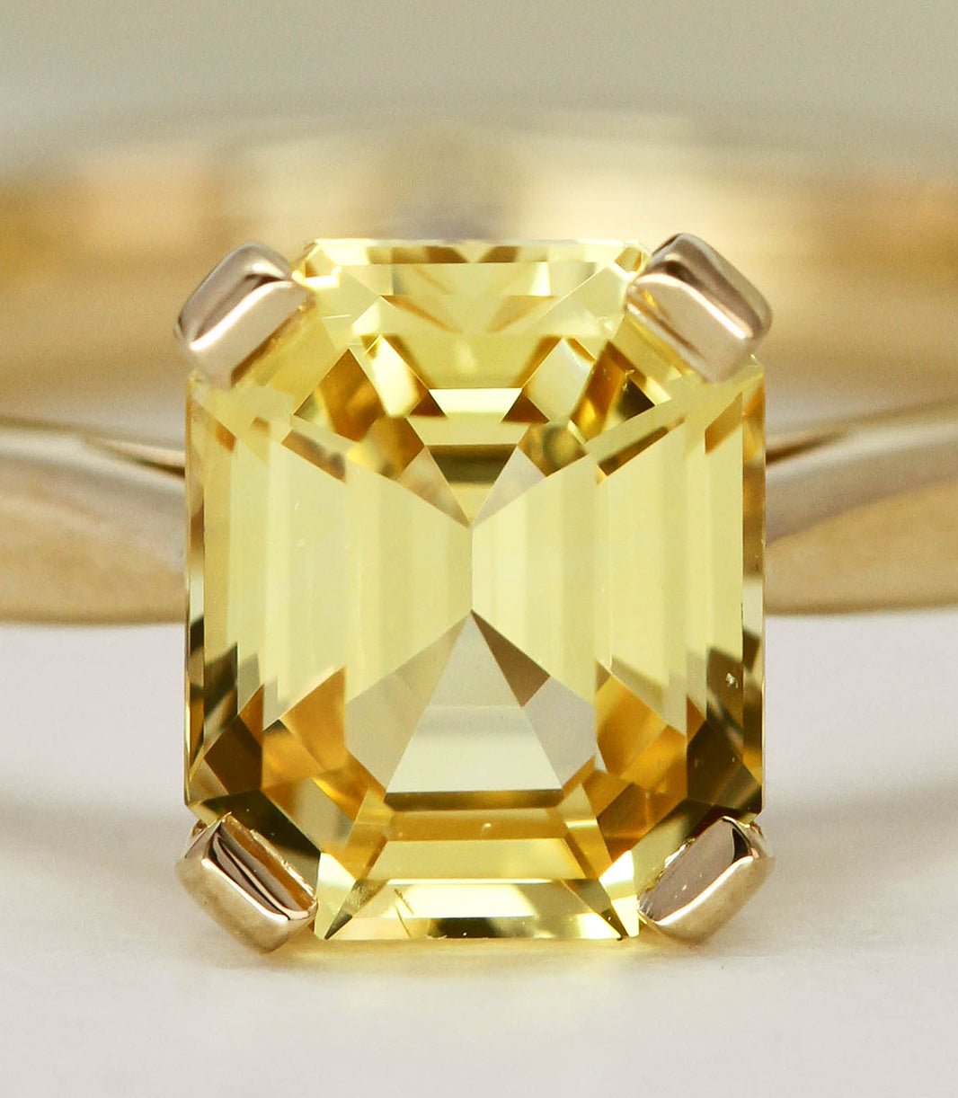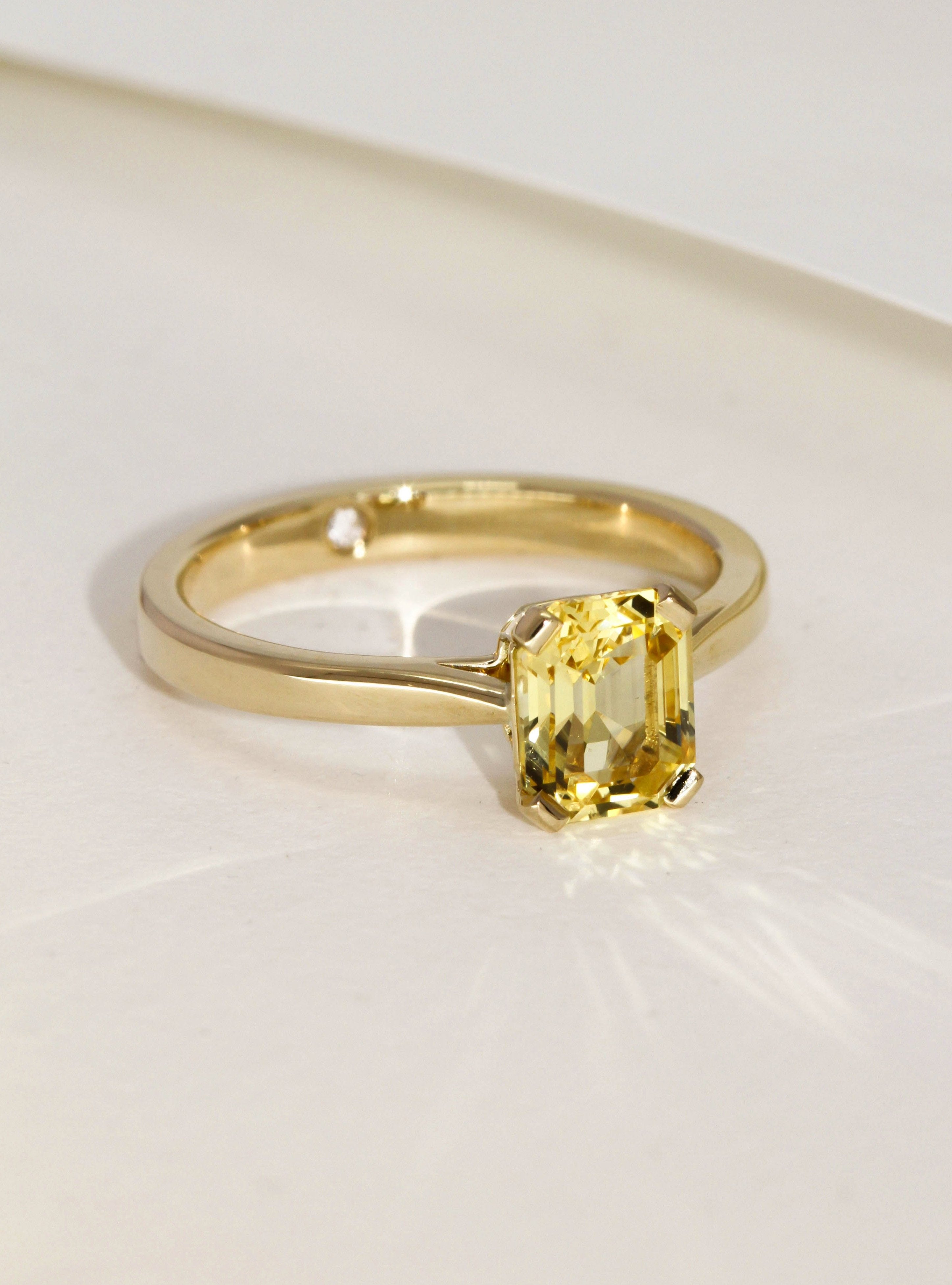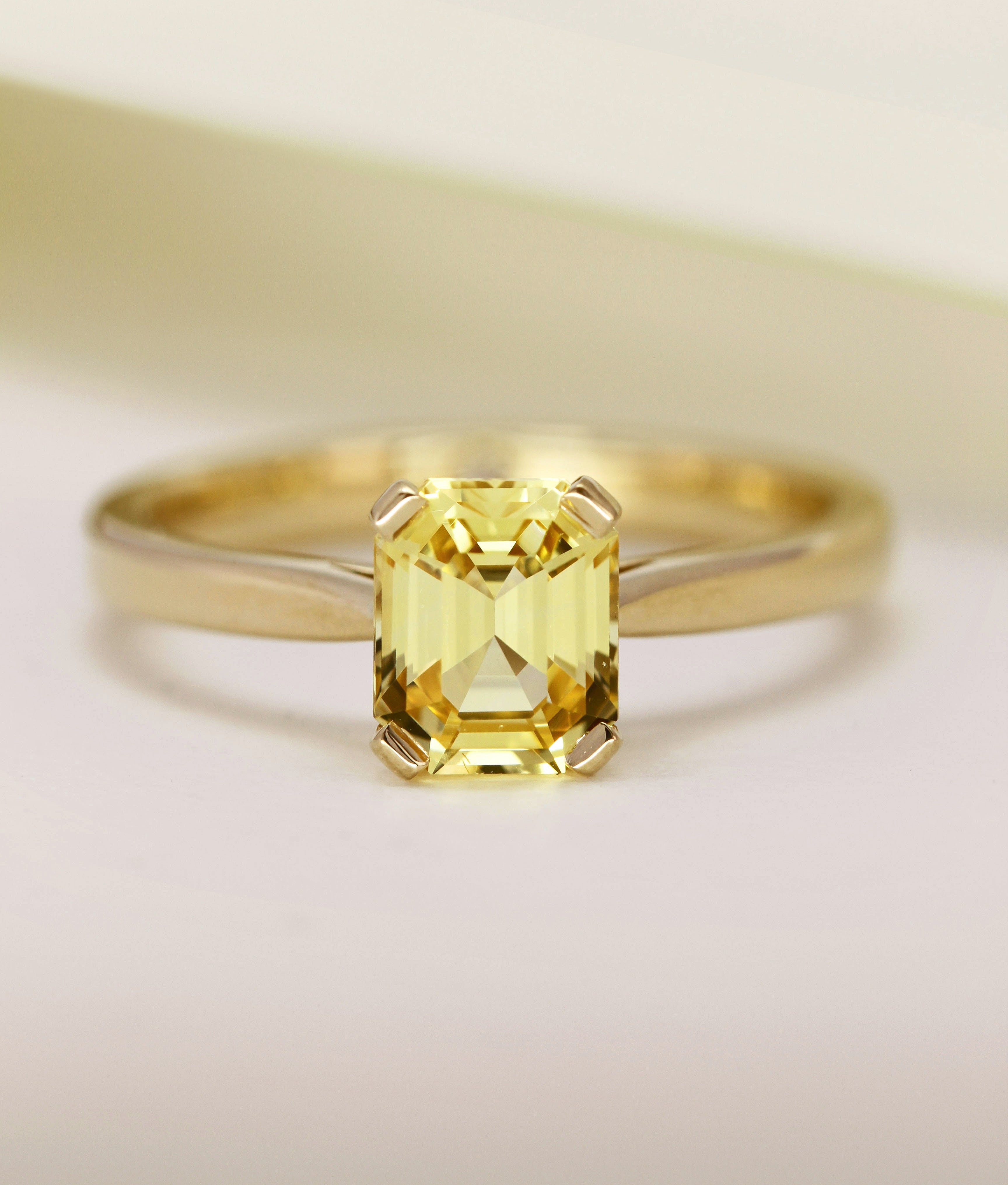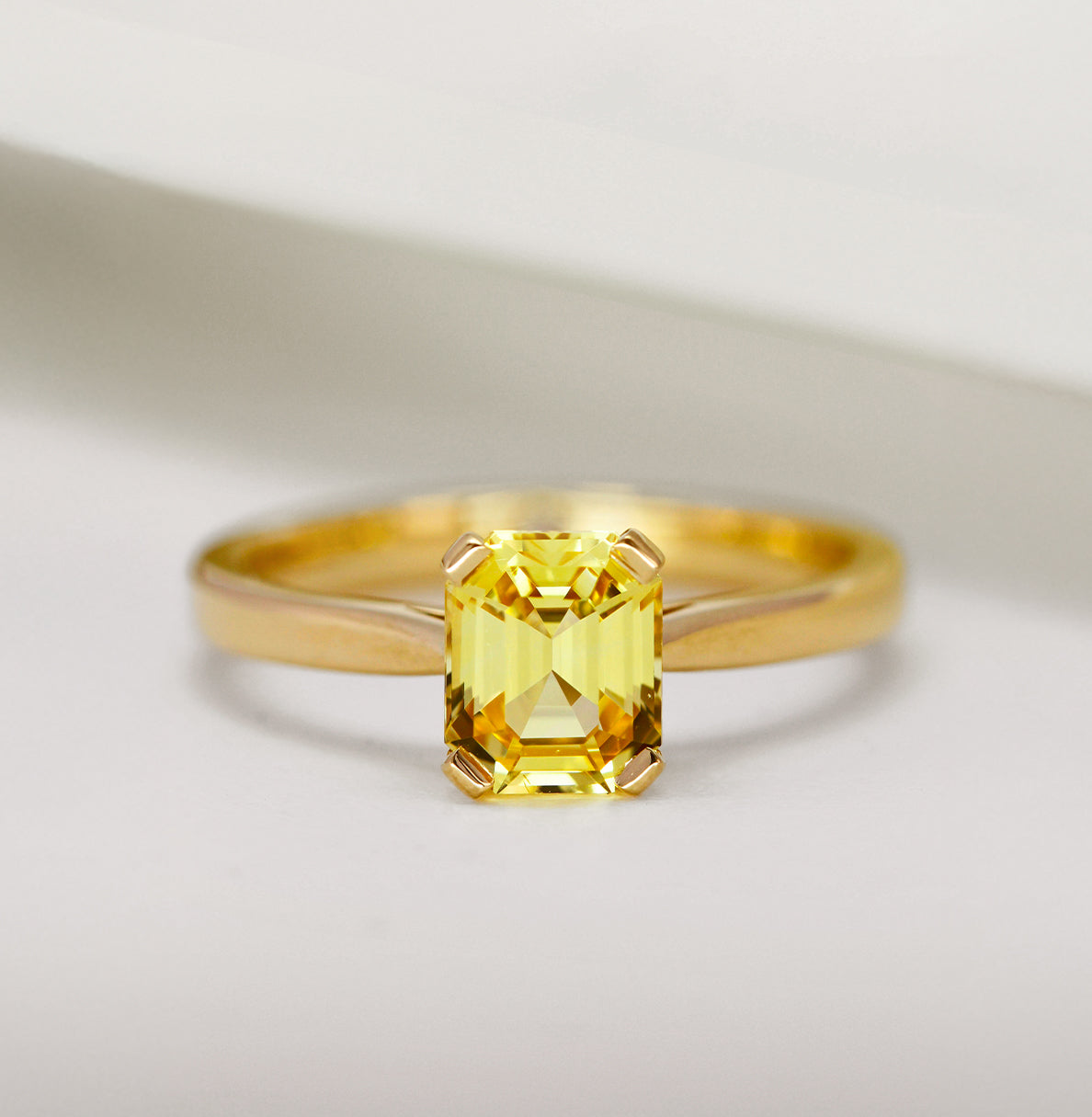 Bague de fiançailles : Solitaire en or jaune 18k - Saphir jaune taille émeraude 1,42 ct