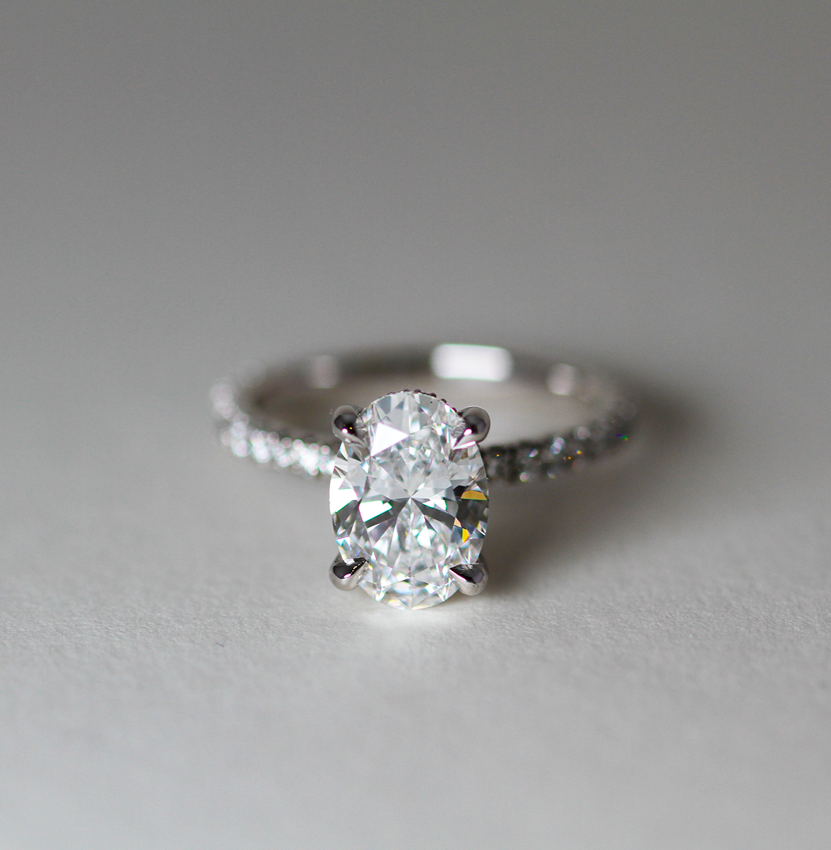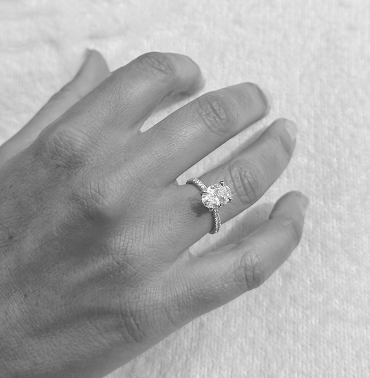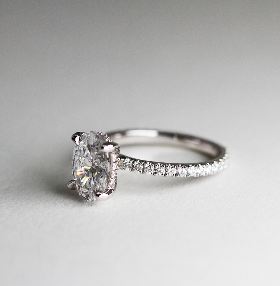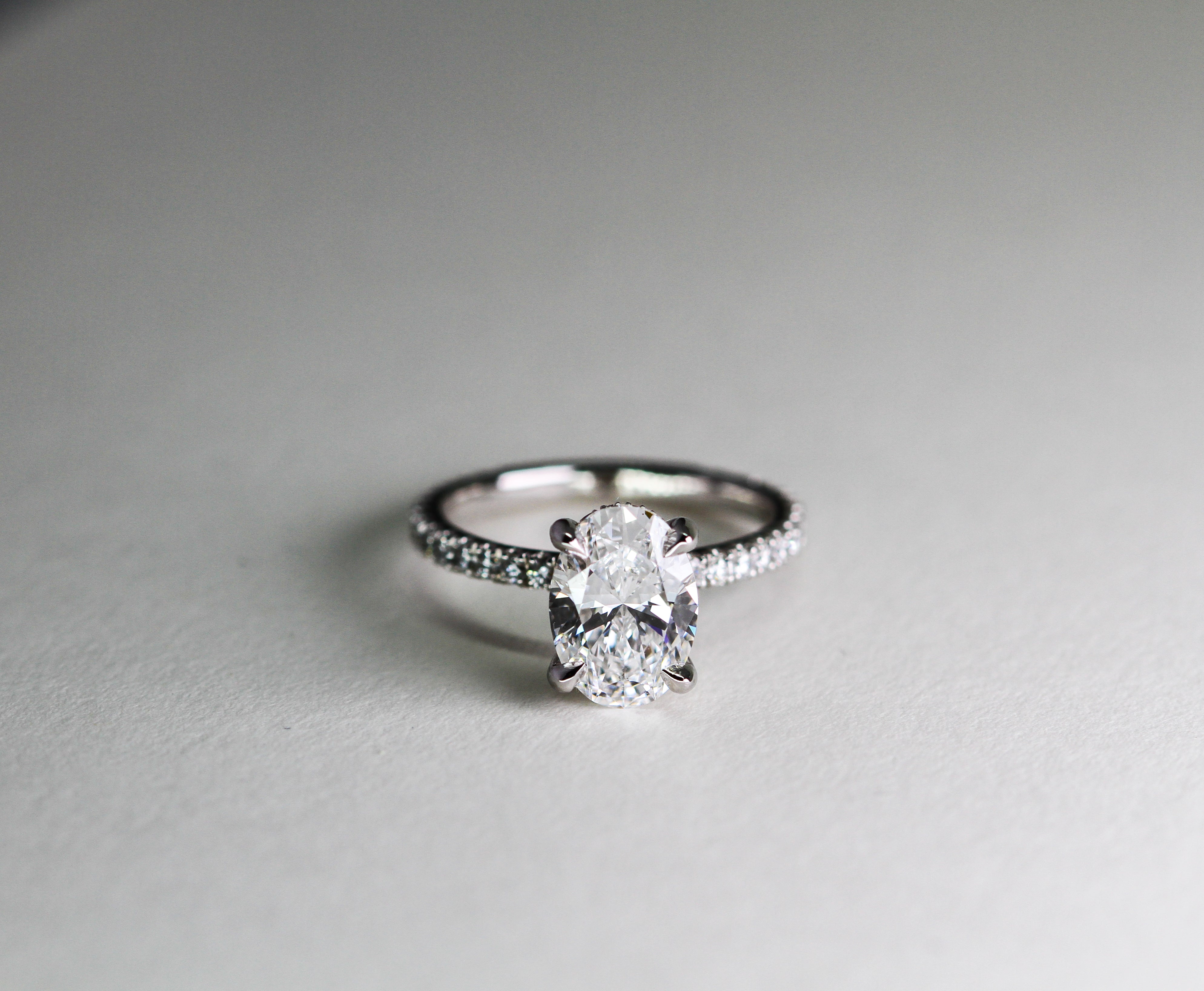 • Bague de fiançailles : Bague de fiançailles - diamant taille ovale 2.01 ct - pavage de diamants ronds taille brillant - monture en platine 950